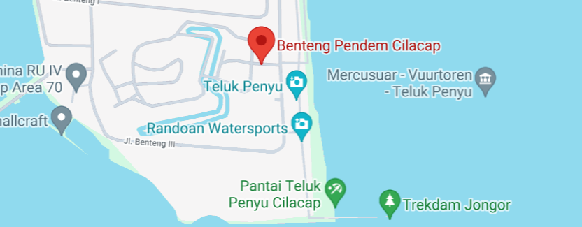 Benteng Pendem berlokasi di Jl. Benteng, Sentolokawat, Cilacap, Kec. Cilacap Sel., Kabupaten Cilacap, Jawa Tengah
