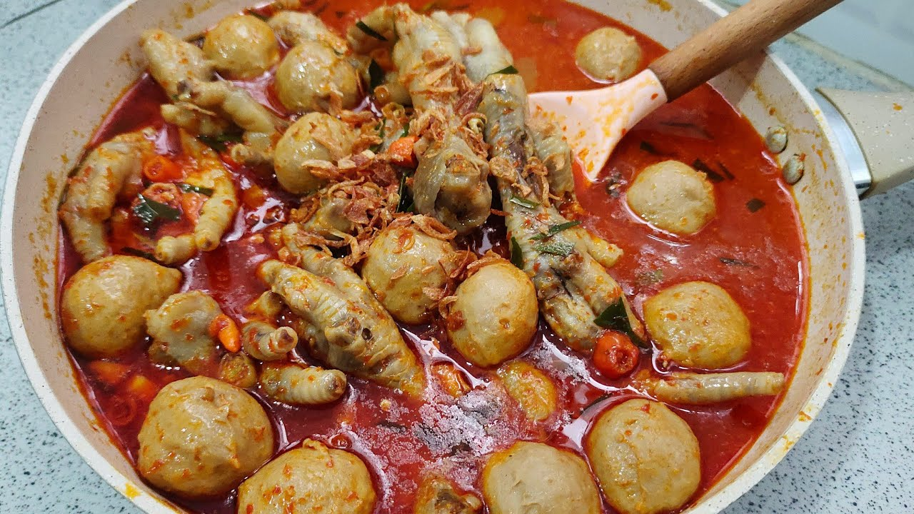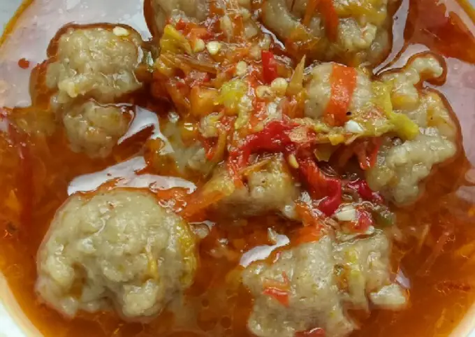 Makanan ini terdiri dari bakso kecil-kecil (pentol) yang disajikan dengan kuah pedas menggugah selera.
