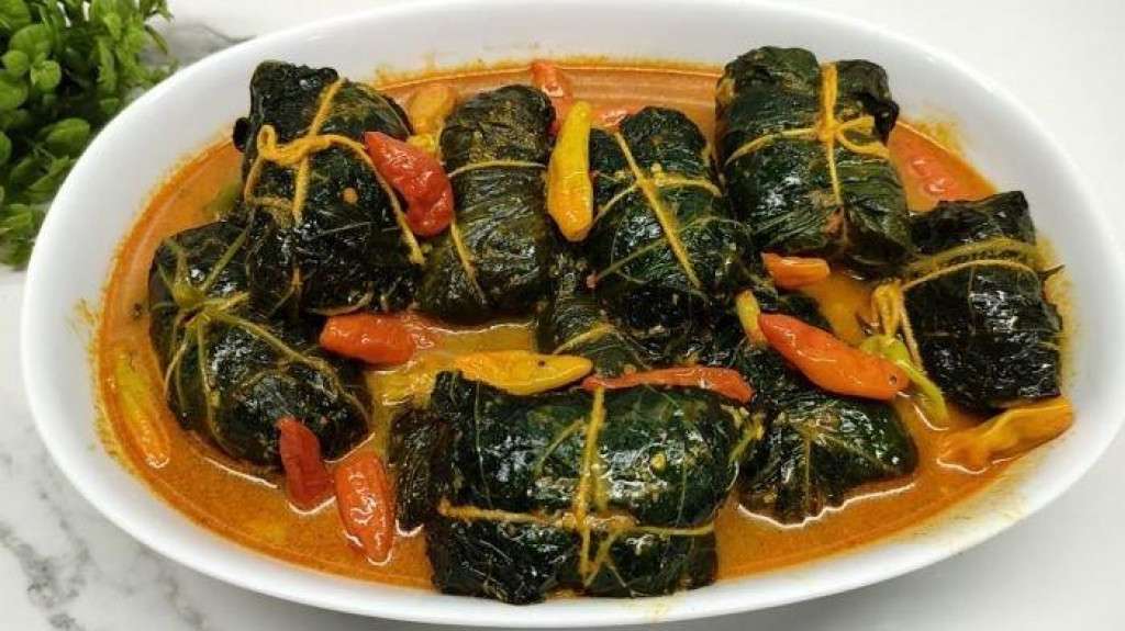 Buntil adalah terbuat dari daun singkong atau daun pepaya yang diisi dengan campuran kelapa parut dan ikan teri