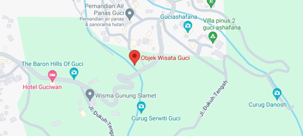 Wisata guci berlokasi di Jl. Objek Wisata Guci, Kalengan, Guci, Kecamatan Bumijawa, Kabupaten Tegal, Jawa Tengah. Terletak di Desa Guci, Kecamatan Bumijawa, Kabupaten Tegal, Jawa Tengah, objek wisata ini berada di kaki Gunung Slamet. Dikenal dengan pemandian air panas alami yang dikelilingi oleh pemandangan alam yang indah, Guci menawarkan pengalaman relaksasi yang menyegarkan.